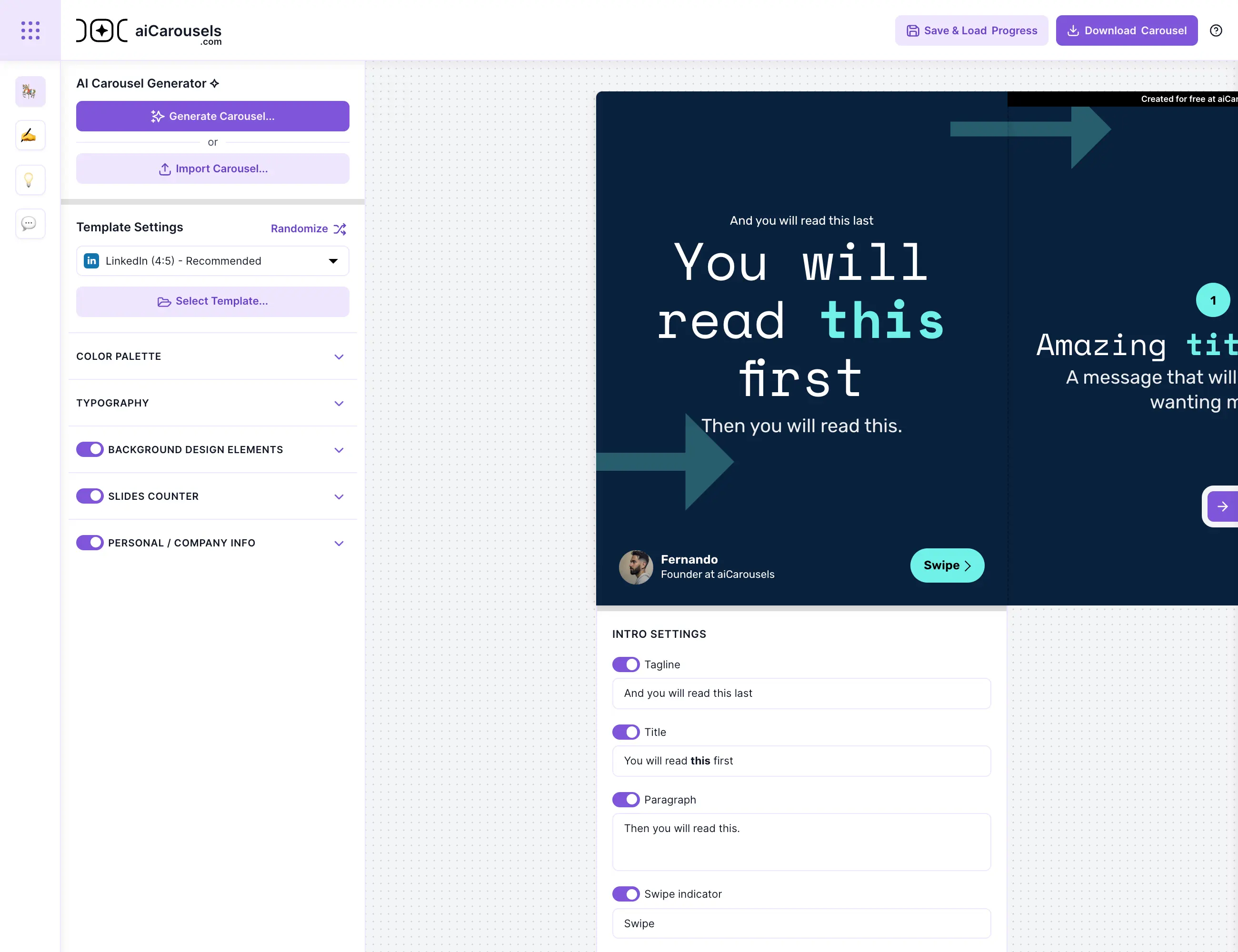 aiCarousels.com simplifies the process, so even if you’re not a designer, you can still create amazing carousels with ease!